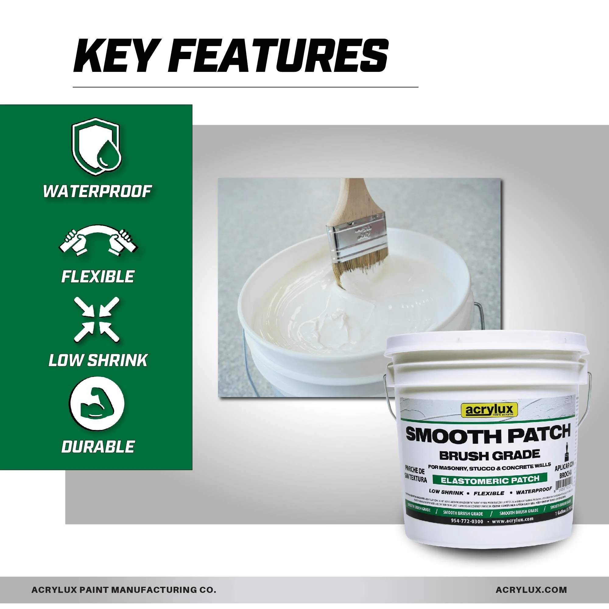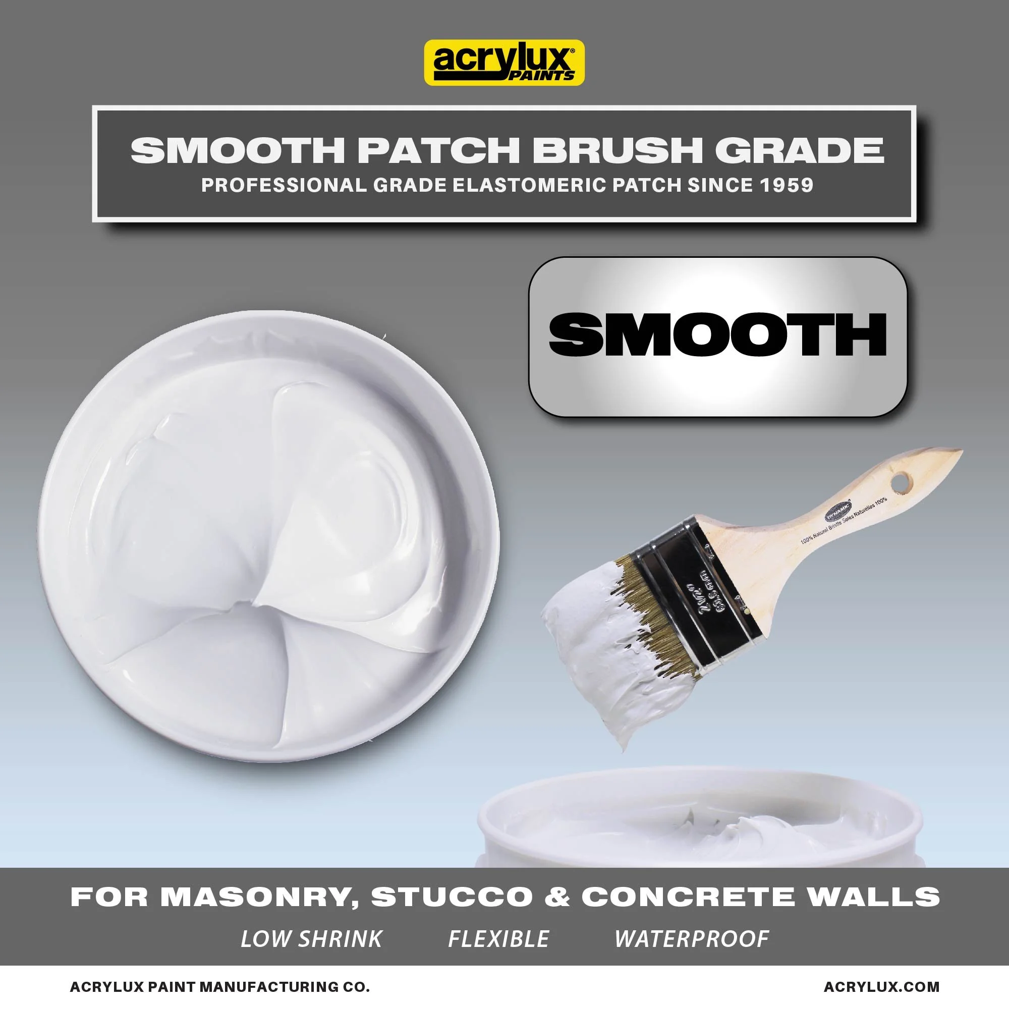 Acrylux Brush Grade Smooth Masonry Patch produces professional grade results when fixing imperfections in masonry, stucco, and concrete surfaces. This product can easily be applied with a chip brush when feathering edges or faced with hairline cracks and small holes.